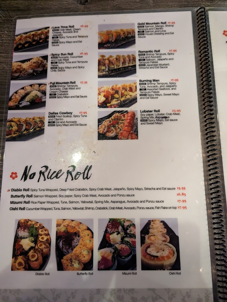 Tuna fruits cream cheese iceberg lettuce spring mix eel sauce sweet mayonnaise and honey mustard.